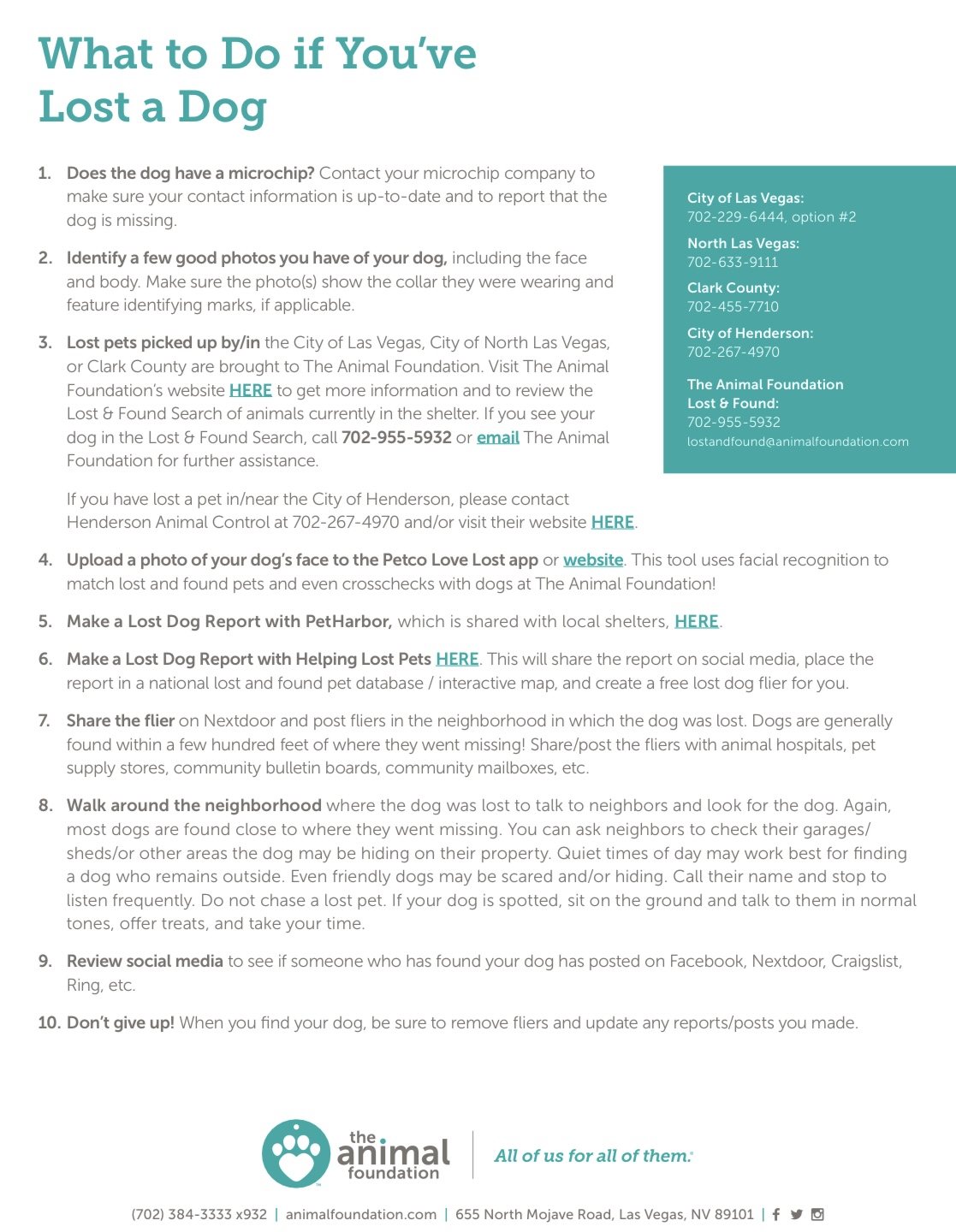 Lost Found Pets Of Las Vegas The Animal Foundation